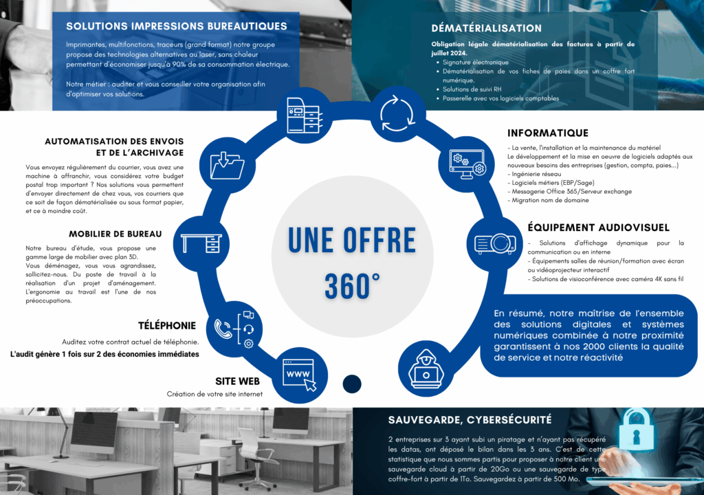Notre expertise couvrant toutes les solutions numériques et systèmes digitaux, associée à notre proximité, assure à nos 2 000 clients une qualité de service exceptionnelle et une réactivité optimale.